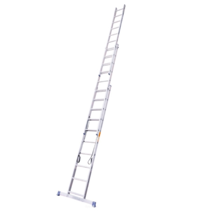 Драбину на три секції (160-9027) виготовлено з високоякісного алюмінієвого сплаву, що робить її легкою і міцною одночасно. Вона здатна витримувати значні навантаження та забезпечує надійність і безпеку під час використання.