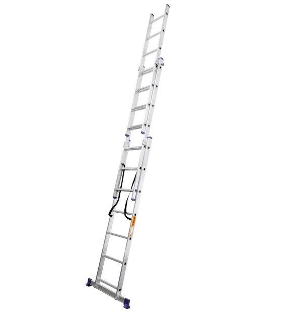 Драбина алюмінієва 3-х секційна BLUETOOLS передбачає різні види збірки. Використання трьох рухомих секцій у даній конструкції дає змогу налаштувати її під ваші потреби.