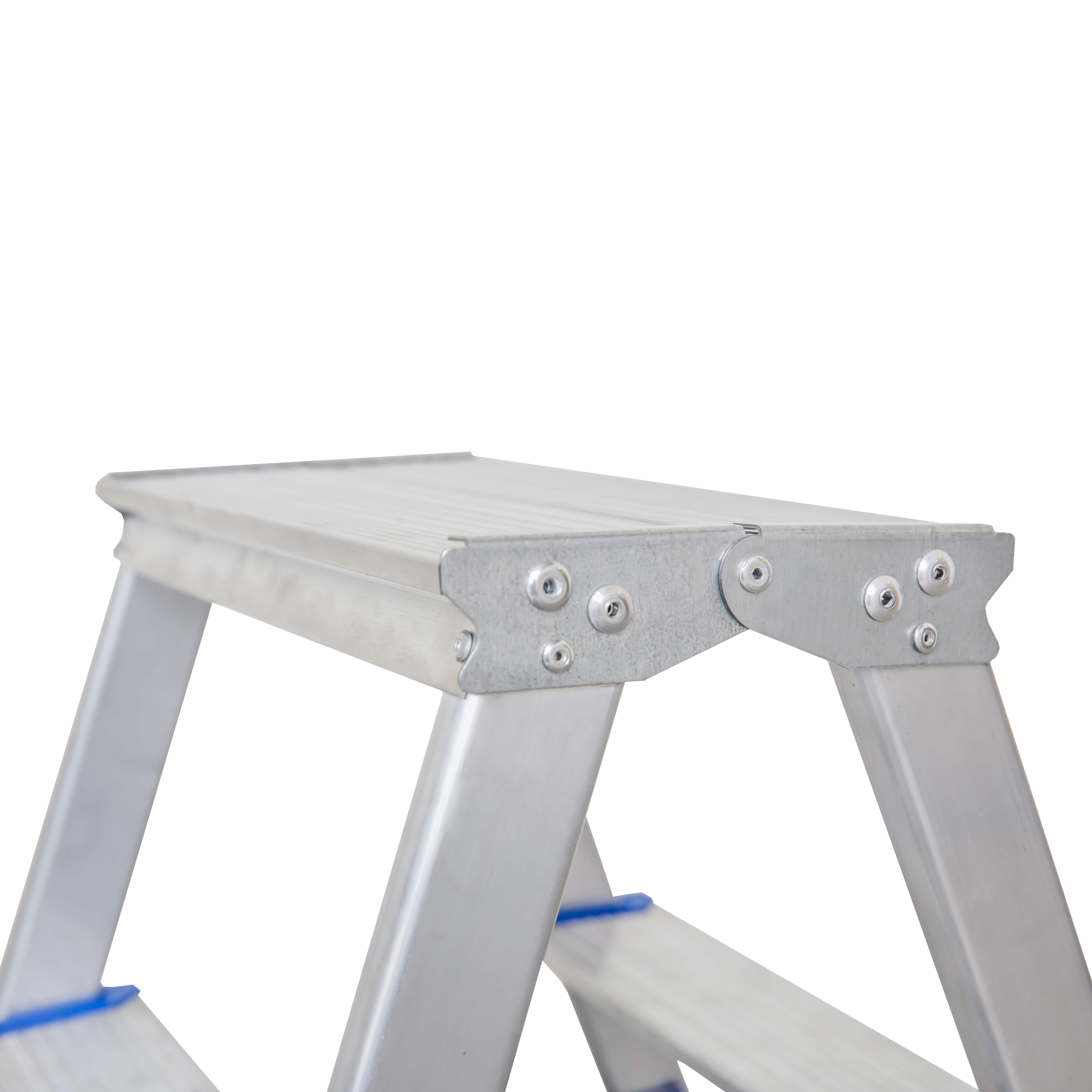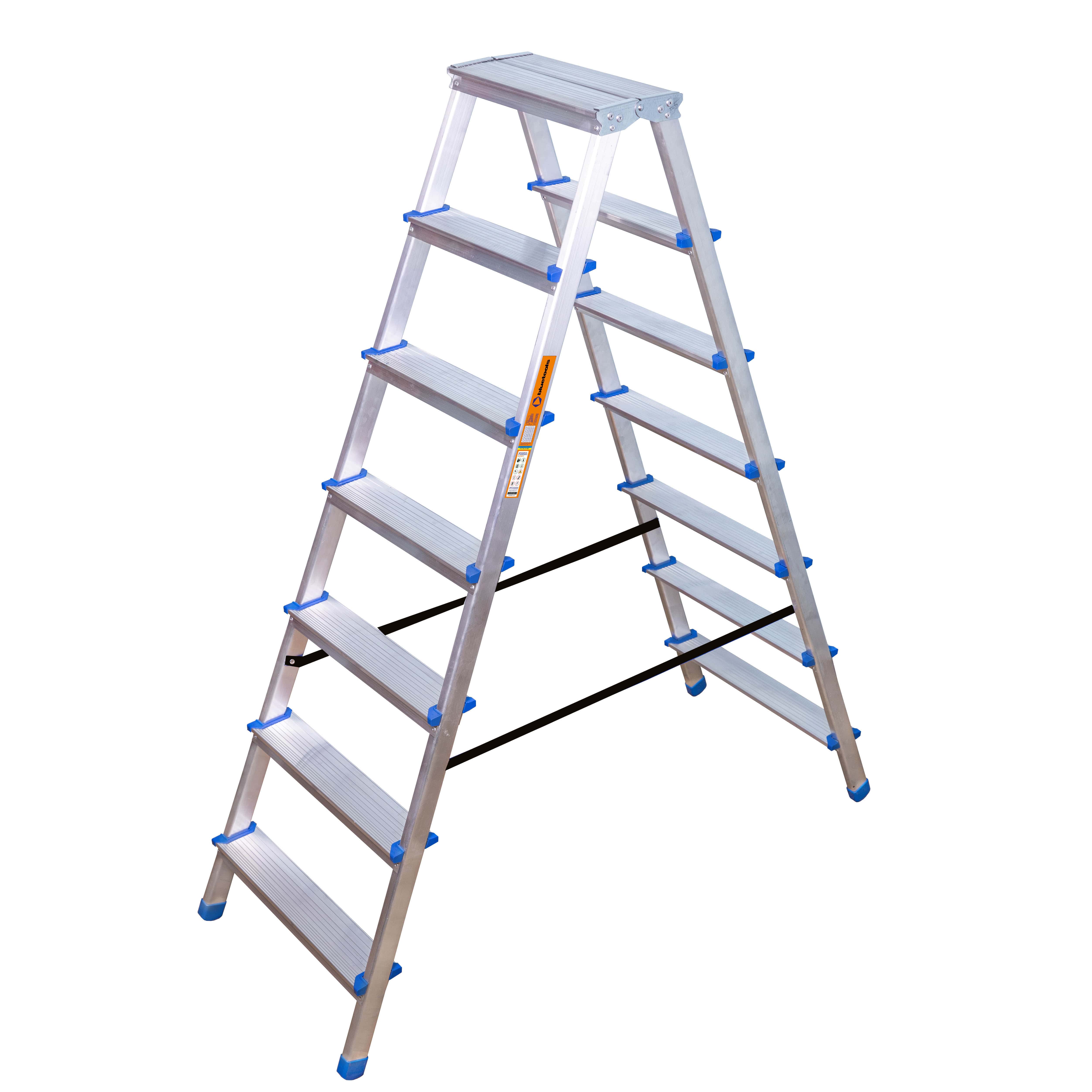 Окрім цього, продумана та зручна двостороння конструкція дозволяє використовувати драбину з обох сторін, а за потреби страхування чи допомоги – вдвох.